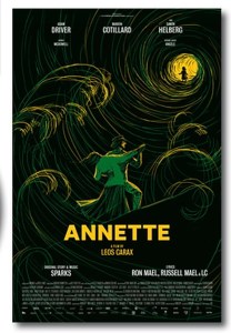 Annette is a musical written by musical duo The Sparks Brothers (Ron and Russell Mael) and directed by French auteur Leos Carax, whose last film was 2012’s Holy Motors.